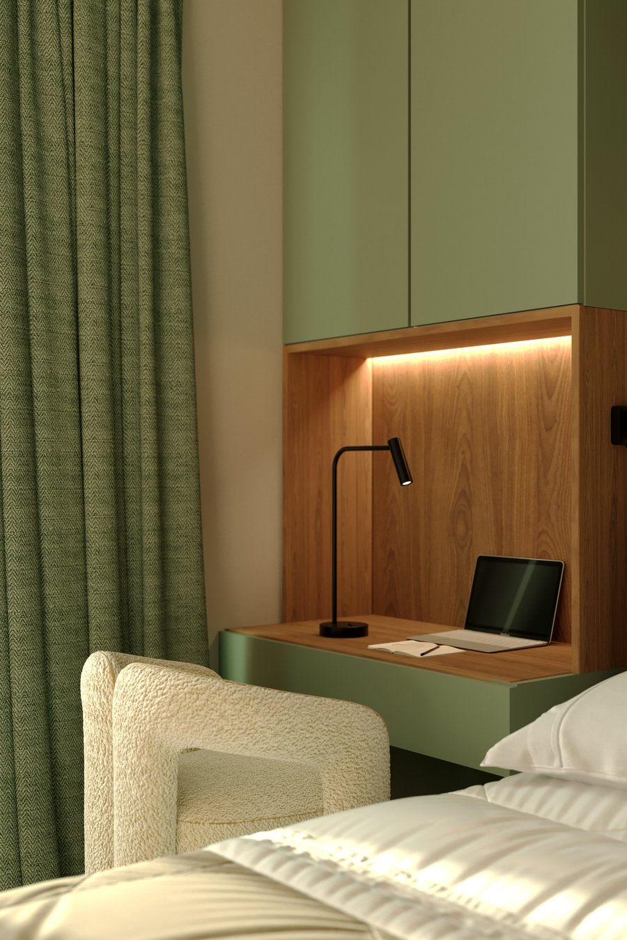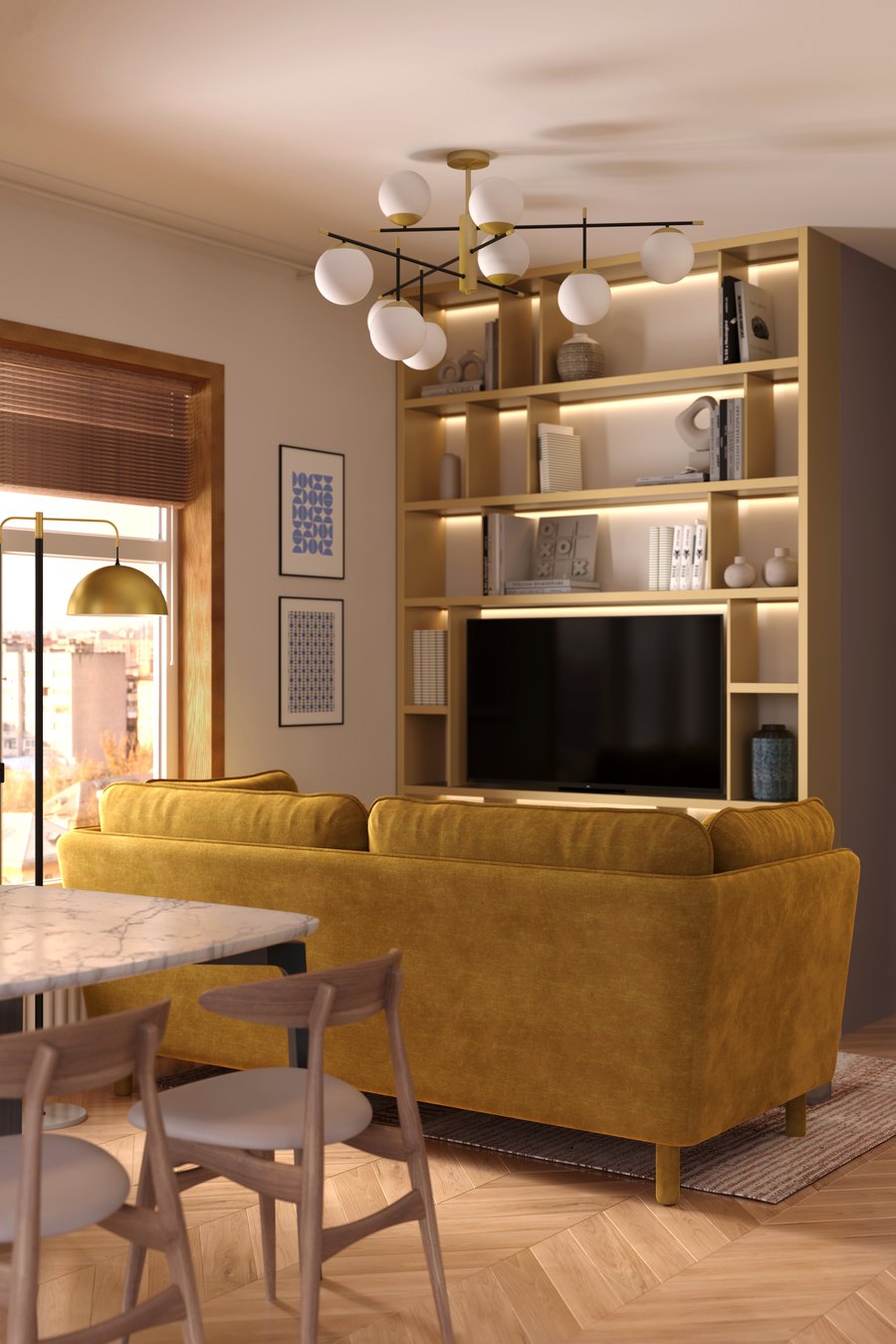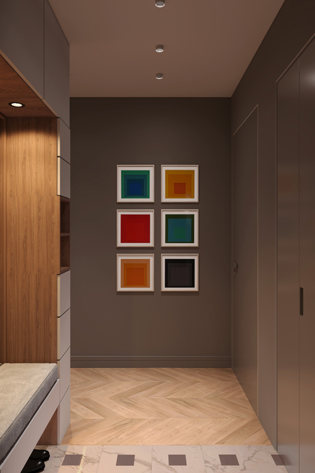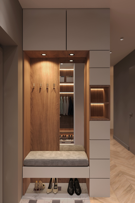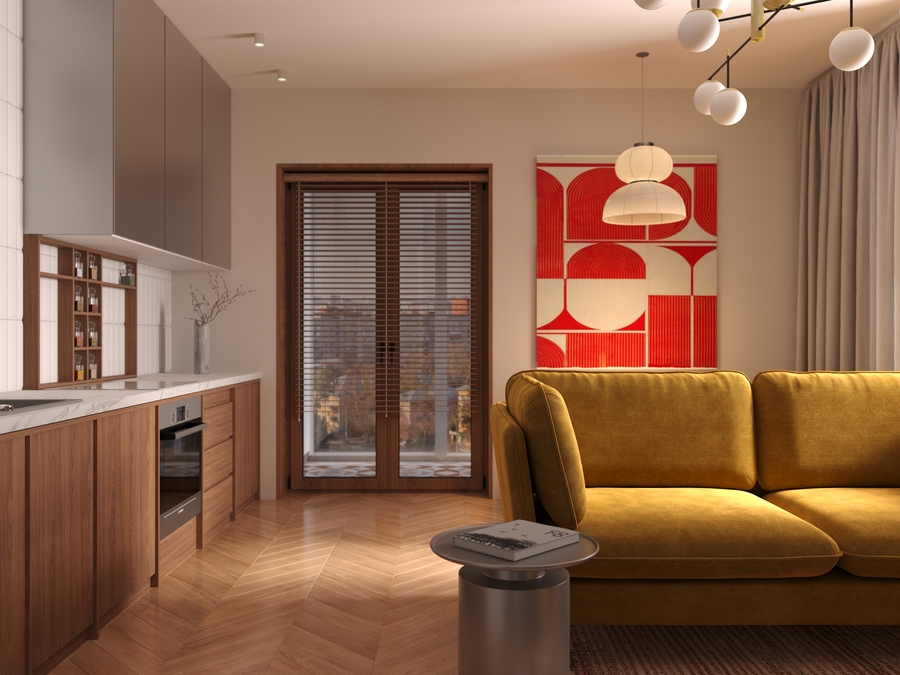 В данном проекте передо мной стояла задача максимально оптимизировать пространство, эффективно используя каждый квадратный метр. При этом интерьер должен был получился очень светлым, просторным и «живым», чтобы привлекать внимание потенциальных покупателей.