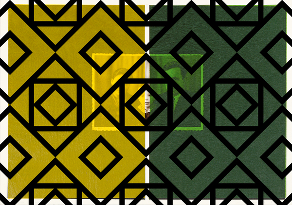 Слева: Владимир Куприянов. Из серии «Наши». 1991. Найденная фотография, цветная копировальная бумага. Справа: Николай Кулебякин. Портрет отца. Из серии «Быстрая серия». 1993