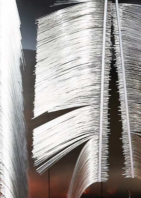 Еще одним продуманным дизайном для галереи является дуэт скамей «COUNTERPART», созданных Томом Прайсом. Он поставил себе задачу оттенить великолепие мраморных постаментов, которые затмевают скульптуры, а также проработать их взаимодействие материальных соотношений. Поэтому мебель представляет собой 2 блока: один сделан из угля, который отсылает к истории этого дома, а другой светящийся — из смолы.