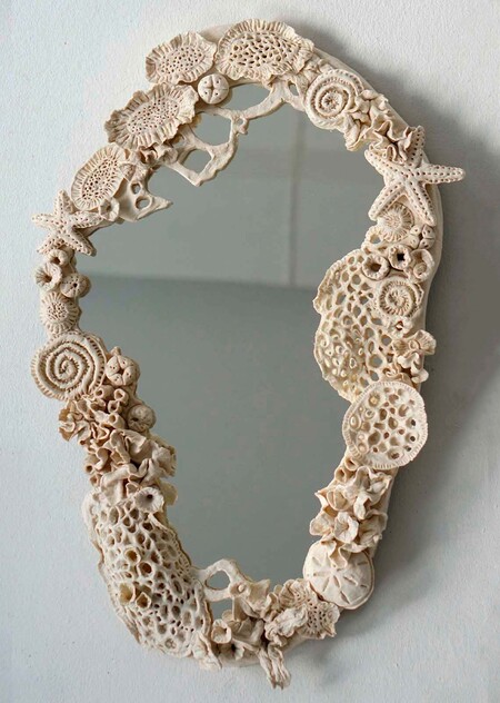 Мне хотелось обрамить неоднозначность и загадочность зеркала чем-то кристально чистым и понятным, столкнуть обманчивость с прозрачной, устойчиво светлой для человека ассоциацией. Поэтому в качестве визуального референса для рамы я выбрала морскую тематику, обитателей океанского дна.