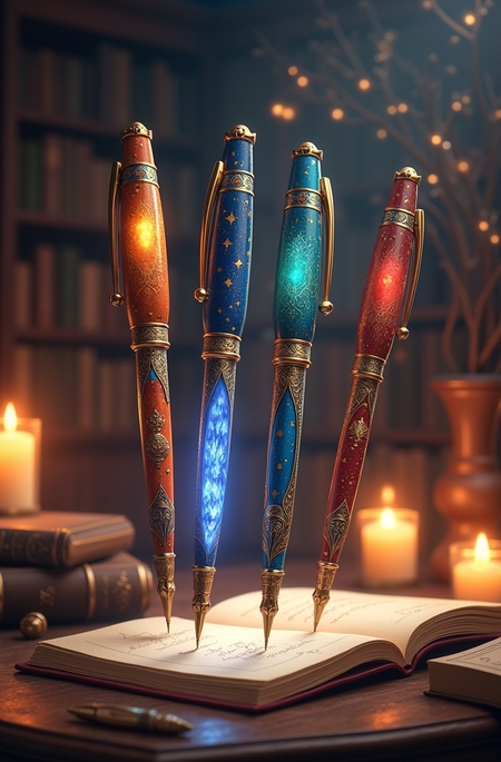 Элементы логотипа, такие как перьевая ручка и открытая книга, олицетворяют процесс написания и творчество. Они напоминают о том, что каждая история начинается с идеи и слова.