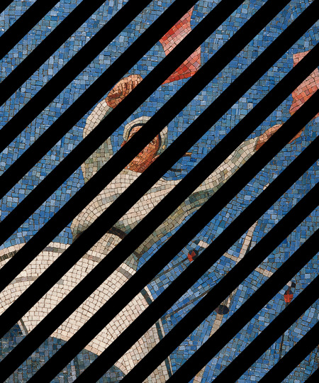 В. А. Фролов (по эскизам А. А. Дейнеки). Мозаика «Сталевары». Фрагмент