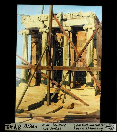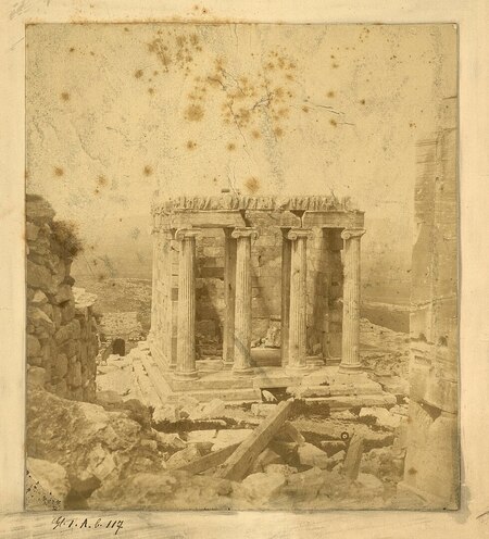 1. Фото храма Ники Аптерос, 1935. Лео Вехрли 2. Фото храма Ники Аптерос, ок. 1860. Филипос Маргаритис