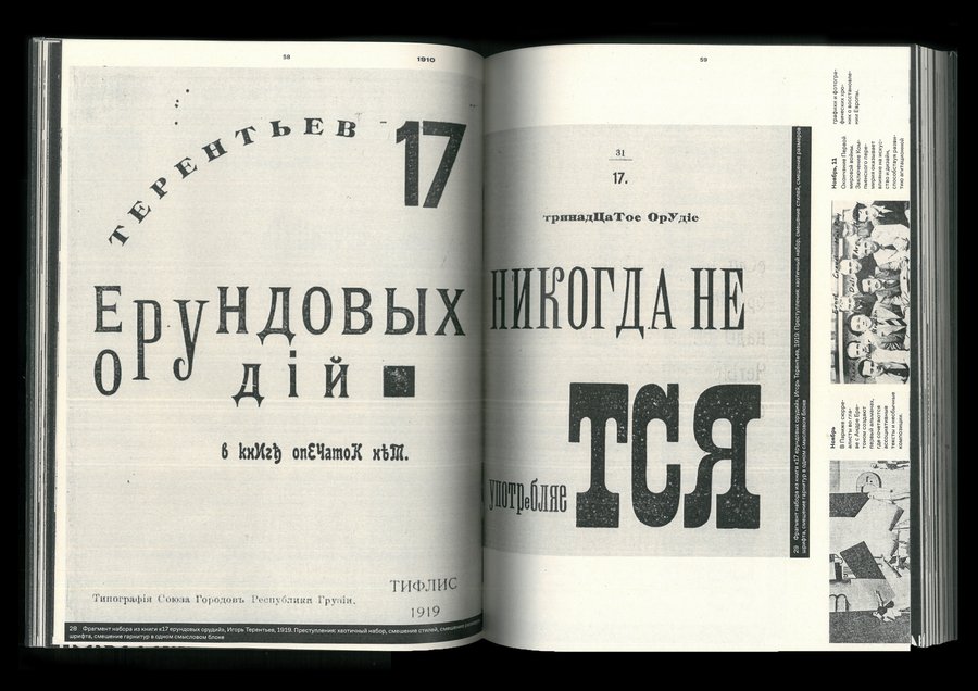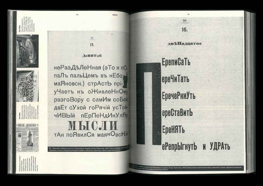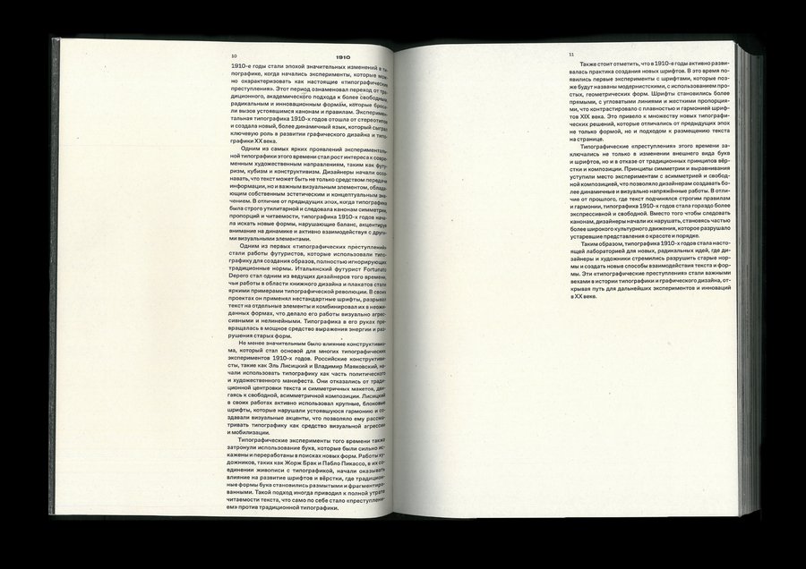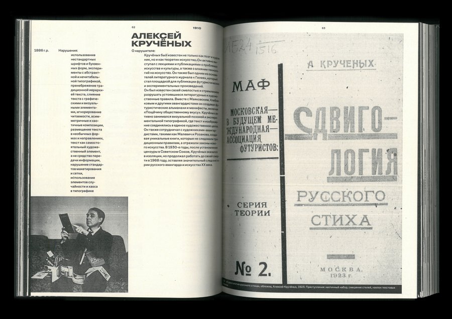 Исследование охватывает большой временной период — с 1910-х по 2000-е, и рассматривает яркие случаи экспериментальной типографики или такие типографические приёмы, которые нарушают условную норму.