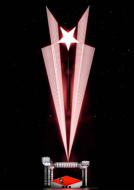 Эль Лисицкий — художник и архитектор, известный своими экспериментами в области конструктивизма, в середине 1920-х годов выдвинул концепцию «горизонтальных небоскребов». Он считал, что архитектура должна отражать новые социальные и технологические реалии. В своих работах он подчеркивал необходимость создания зданий, которые интегрируются в окружающую среду и обеспечивают функциональность. В этом проекте временного фасада можно посмотреть, как небоскребы интегрируются в окружающую среду возле Манежа.