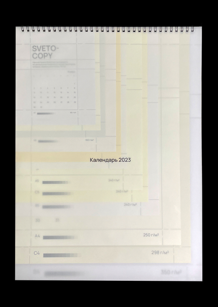 Технический календарь, состоящий из 12 разных типов бумаги: от российской офисной до американских макулатурно-выведенных образцов