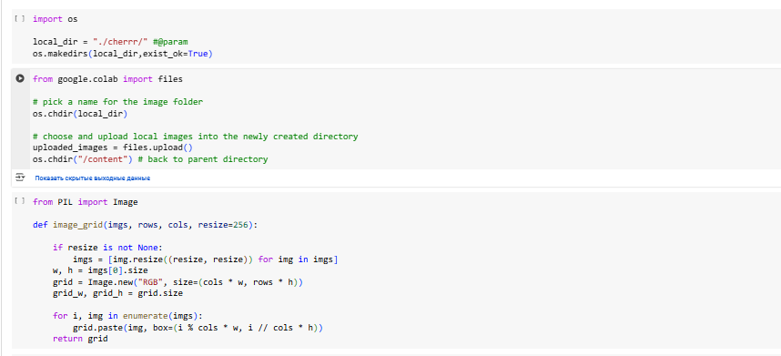 Два ноутбука с подробным кодом обучения модели и генерации картинок хранятся в папке на Яндекс Диске
