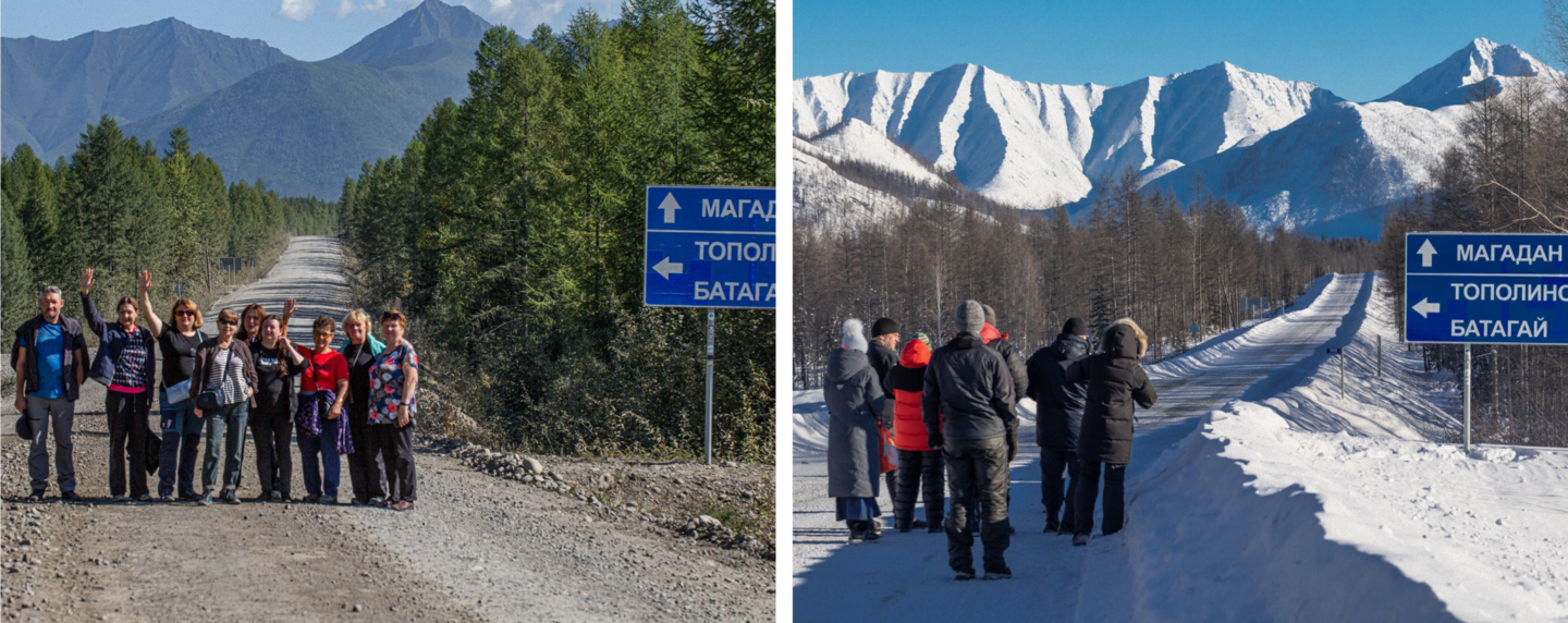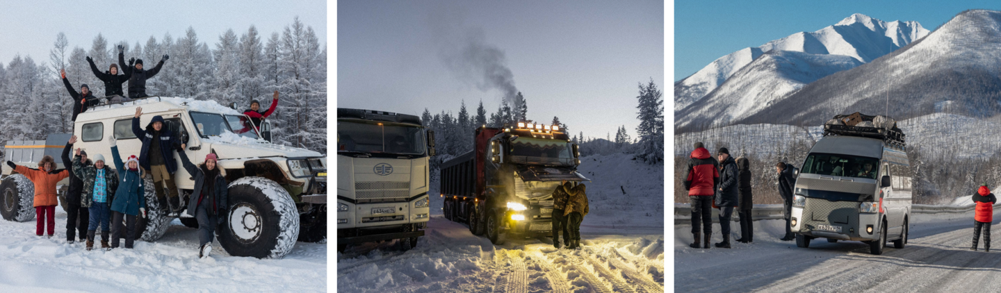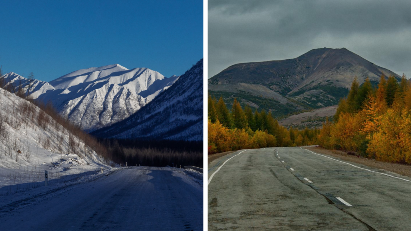 [1] Колымская трасса зимой, Евгений Касперский, 2024 [2] Колымская трасса, Russia Disovery, ~2024 [3] Колымская трасса, «V4: Туры по России», ~2024 [4] Колымская, трасса, Александр Катаржин, ~2020