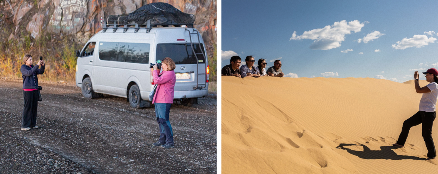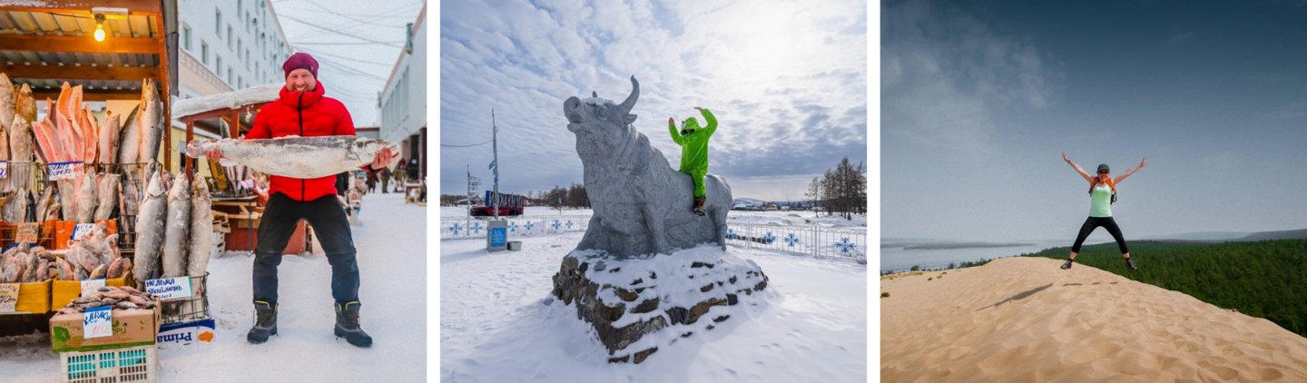 Якутия богата не только природой, но и самобытной культурой, которая привлекает туристов со всего мира. Закономерно, главными героями снимков-презентаций туров выступают туристы и их опыт. Такой выбор обусловлен маркетинговой стратегией по продвижению туров. Из-за яркого снаряжения (по соображениям безопасности) герои таких фотографий становятся ярким инородным пятном на фоне природы.