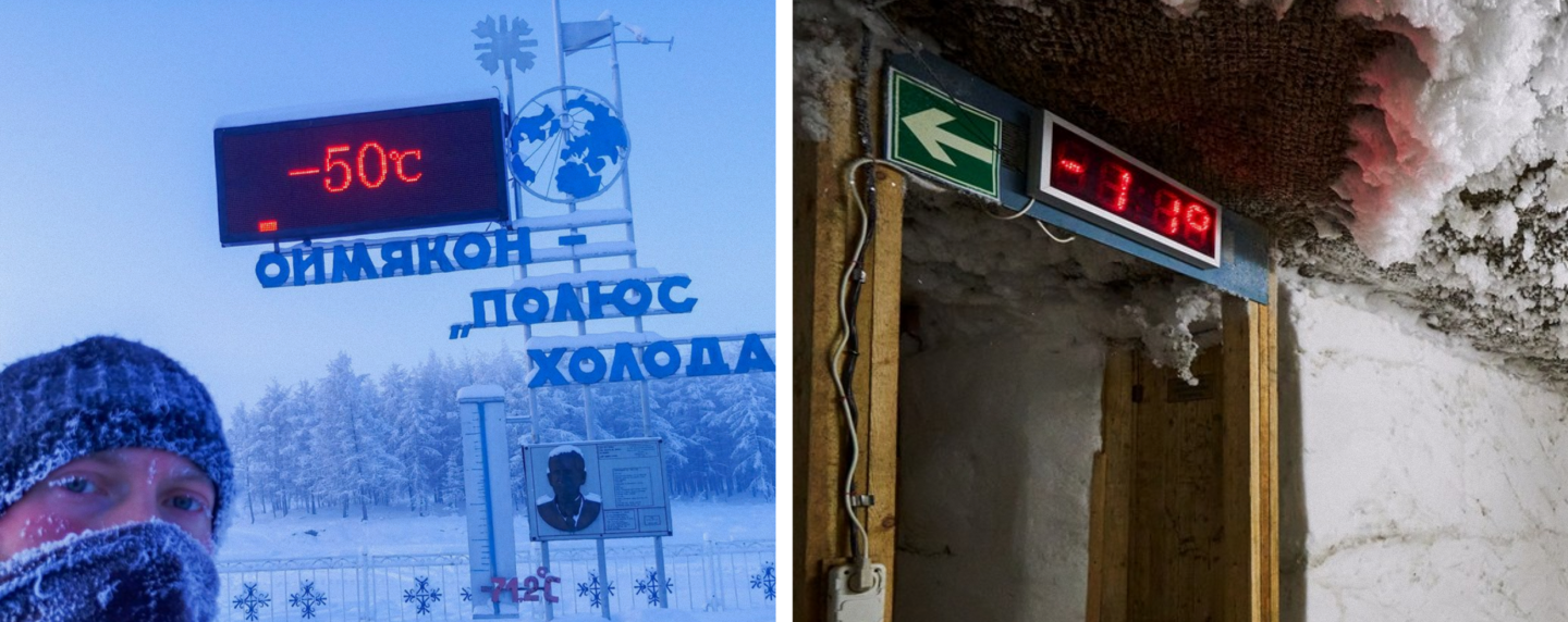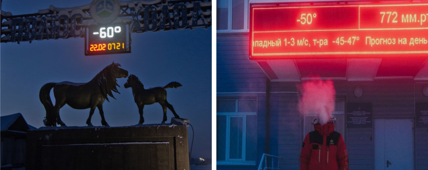 Температурыне показатели в Оймяконе и Якутске [1] Материалы с сайта «Youtravel.me», ~2021 [2]Алексей Калин, 2024 [3] Автор неизвестен, ~2020 [4] «Якутск туристический», Евгений Касперский, 2022