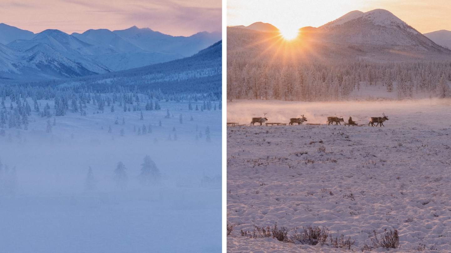 [1] Хребет Улахан Чистай, Сергей Карпухин, 2021 [2]Оймяконское нагорье, из материалов сайта «S7», 2020 [3] Оймякон, Маартен Такенс, 2013 [4] Наталья Сапрунова, ~2024