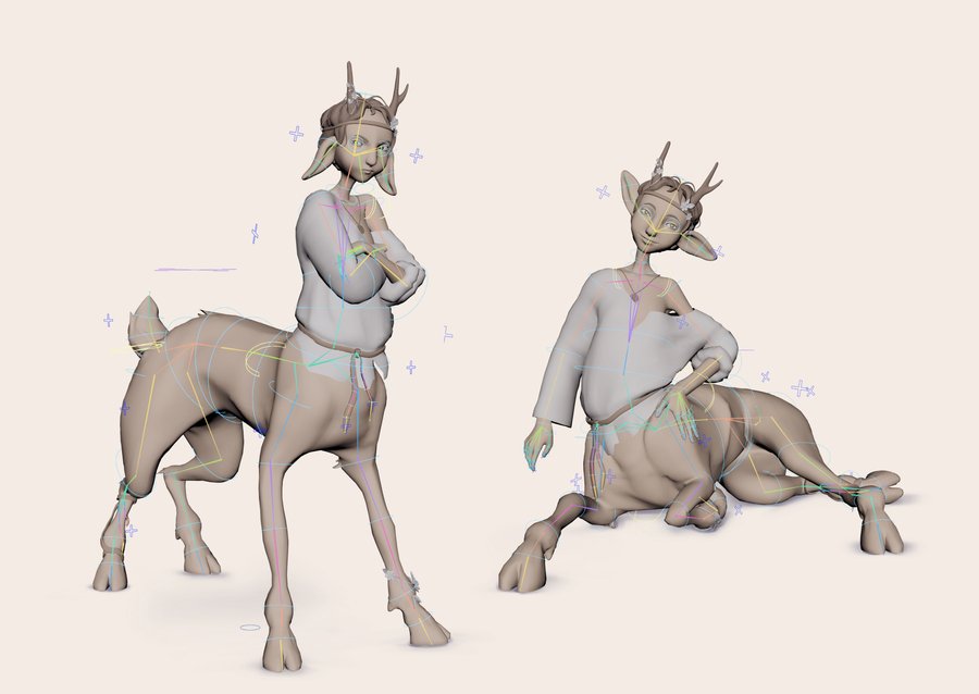 Демонстрация работы рига, выполненного при помощи Advanced Skeleton. Эмоции сделаны с использованием блендшейпов.
