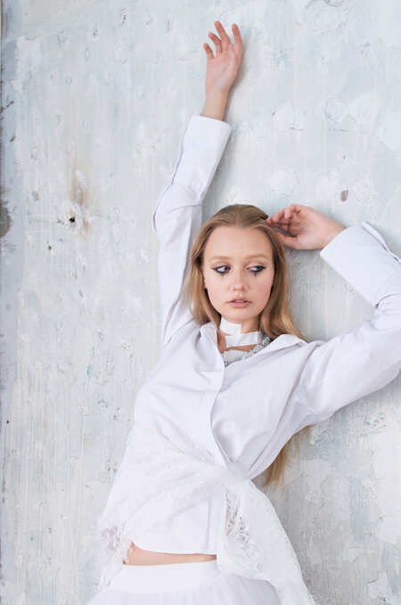Контраст между визуальной чистотой и символами страдания передаёт внутреннюю борьбу.