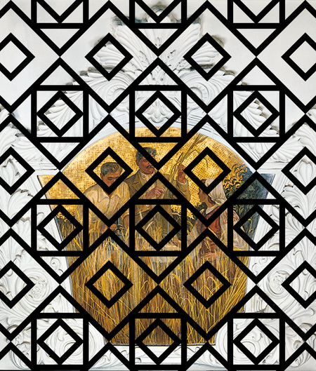 Виктор Коновалов, Вартан Аракелов, Порфирий Михайлов, Леонид Карнаухов, Александра Ширяева, Игорь Радоман, Константин Аксенов. Панно «Трудящиеся советской Украины»: «Овощеводы». Фресковая живопись. Темпера, золото. 1953