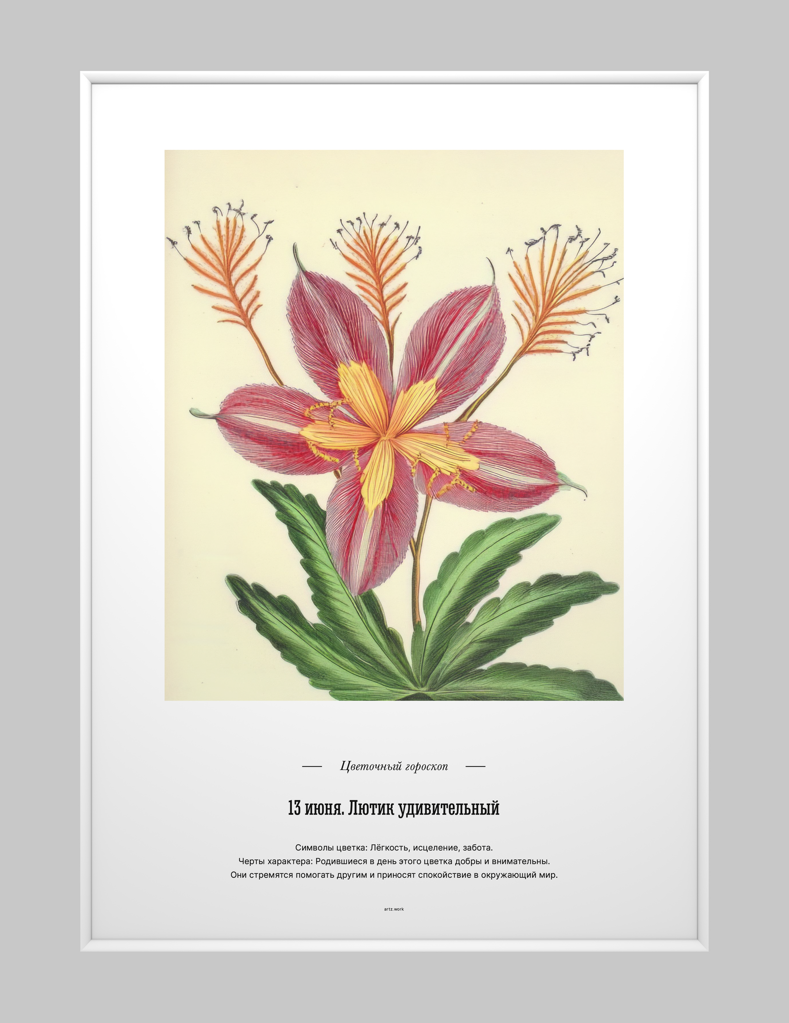 Черты характера: Родившиеся в день этого цветка добры и внимательны. Они стремятся помогать другим и приносят спокойствие в окружающий мир.
