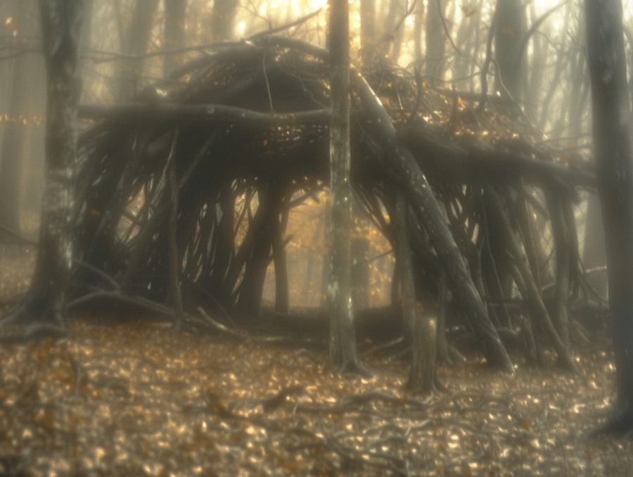 Промты к изображениям с кадрами из фильма: 1. Close-up, forest spirit character in his dwelling, blur, blur: 2, grain, vhs 2. A full-length bird’s eye view, a forest spirit lies against withered branches, a full-length human figure is made up of landscape puzzles, it is made up of landscape puzzles, they lie on top of it 3. Close-up, a forest spirit lies on a background of withered branches, it is made up of landscape puzzles, they lie on top of it 4. The forest spirit blurs into the landscape, merges with it 5. Close-up, a forest spirit lies on a background of withered branches, it is made up of landscape puzzles, they lie on top of it