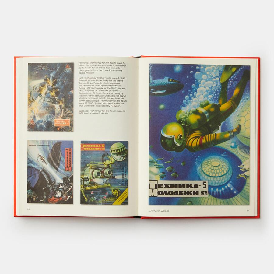 Книга разбита на четыре главы: «Исследование космоса» включает в себя изображения на тему покорения космоса и межгалактических путешествий путешествия: сна них — спутники, ракеты, космические корабли и собаки Стрелка и Белка. Вторая глава «Космические пионеры» показывает первопроходцев, знаменитостей и героев, таких как Юрий Гагарин. «Видения будущего» показывает утопическую архитектуру на Земле — возвышающиеся вертикальные города, соединенные огромными сетями воздушных и водных инфраструктур, обслуживающися с помощью автоматизированных технологий. И, наконец, «Альтернативные миры», рассказывает о придуманных результатах космических путешествий, где приключения приводят к открытию новых форм жизни.