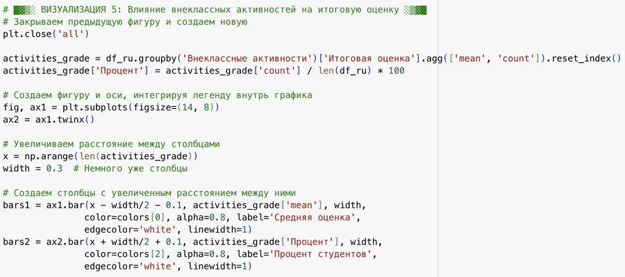 Эта визуализация позволяет увидеть сложную картину взаимосвязей различных факторов, влияющих на образовательный процесс.