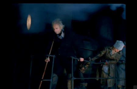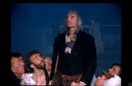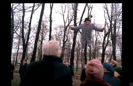 Эпизод, где герой поднимается в воздух, становится моментом выглядит двусмысленным, но сразу за ним следует кадр с кладбищем. С одной стороны, это визуализация идеи духовного освобождения — выход из нищеты, из тупика земного существования. С другой стороны, этот полёт буквально опровергается последующим кадром: могила персонажа на пустом осеннем кладбище.