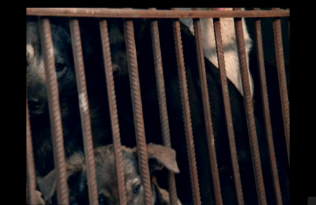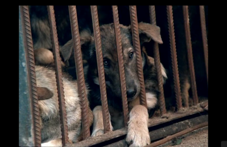 Кадры с бездомными собаками за решеткой выстраивают параллель между бездомными животными и людьми, оказавшимися за границей общества.