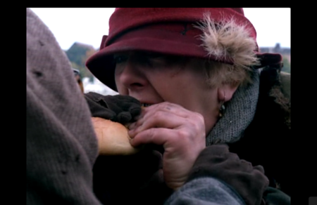 Сцены унижения не лишены гротеска. Когда герои падают на тротуар или дерутся за булку, камера не отворачивается, но и не превращает это в мелодраму.