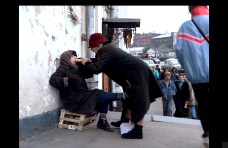 Разруха фиксируется натуралистично, без дистанции и приукрашавший. При всей телесной грязи в кадре сохраняется ощущение достоинства человеческого жеста — поддержать, поделиться, накормить другого.