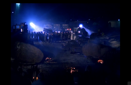 В финале с приходом зимы и наступлением ночи сцены приобретают апокалиптическую интонацию. Синие прожекторы, ослепляющий свет фар, дым, пламя костров. Заброшенное место превращается в военный фронт.