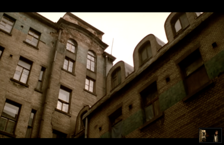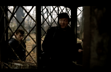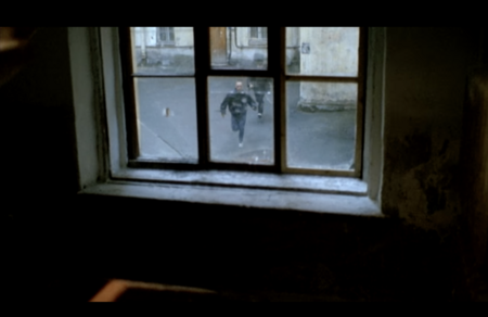 В Петербурге Данила сидит в старом склепе на кладбище вместе с бездомными. Клетка решёток, сквозь которые мы видим действие, создаёт ощущение закрытого, запертого пространства. Героев видно через прутья, как будто они находятся в ловушке. Но это не тюрьма закона, а тюрьма времени: они живут среди руин старого мира, не в состоянии выбраться наружу.