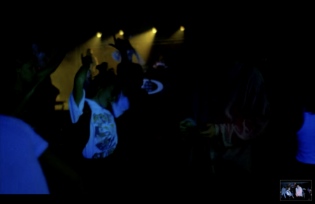 Толпа, танцующая в клубе, передает хаотичное ощущение молодости. Синеватый свет и тёмные тени превращают дискотеку в аналог уличного хаоса, где ритм заменяет смысл.