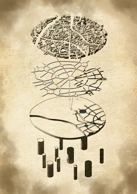 Уплотнение и увеличение городов приводят к обезличиванию и обесчеловечиванию среды. Озерный рынок, располагающийся в центре искусственного водоема — визуально изолирован от жилой застройки, иллюстрируя с одной стороны, важность сомасштабности среды человеку, с другой подчеркивая функцию рынка как градообразующего элемента.