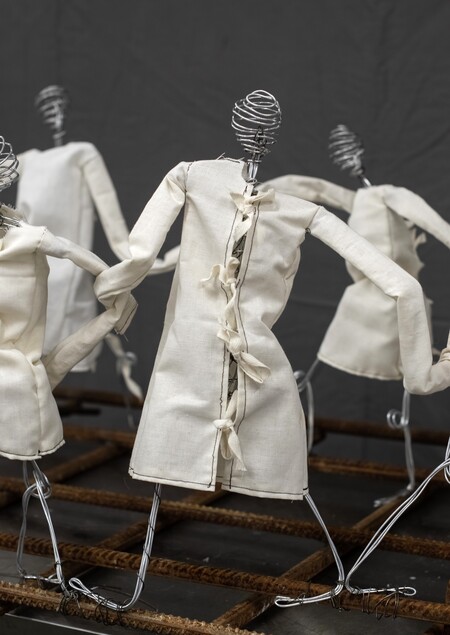 В моей работе представлены 7 добродетелей, от которых остались лишь скрюченные скелеты. Их правда утихла вместе с происходящими подменами понятий, их обрекли изгоями, сослали в тюрьмы, заперли в психушки. Они пляшут свой Танец, усмиренные, обескровленные, истощенно кривые, но сверкающие.