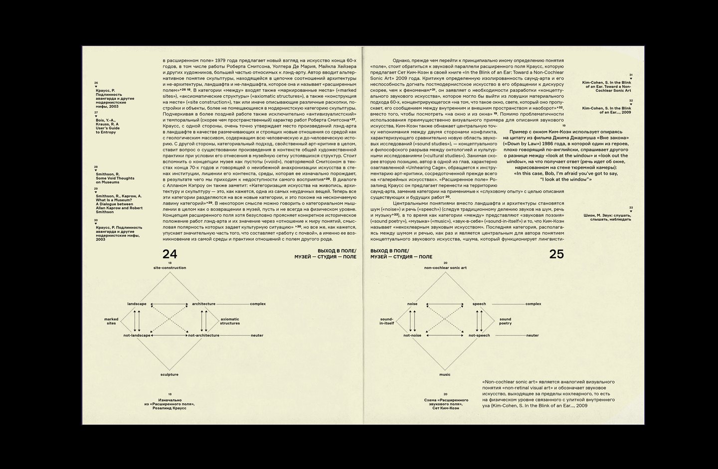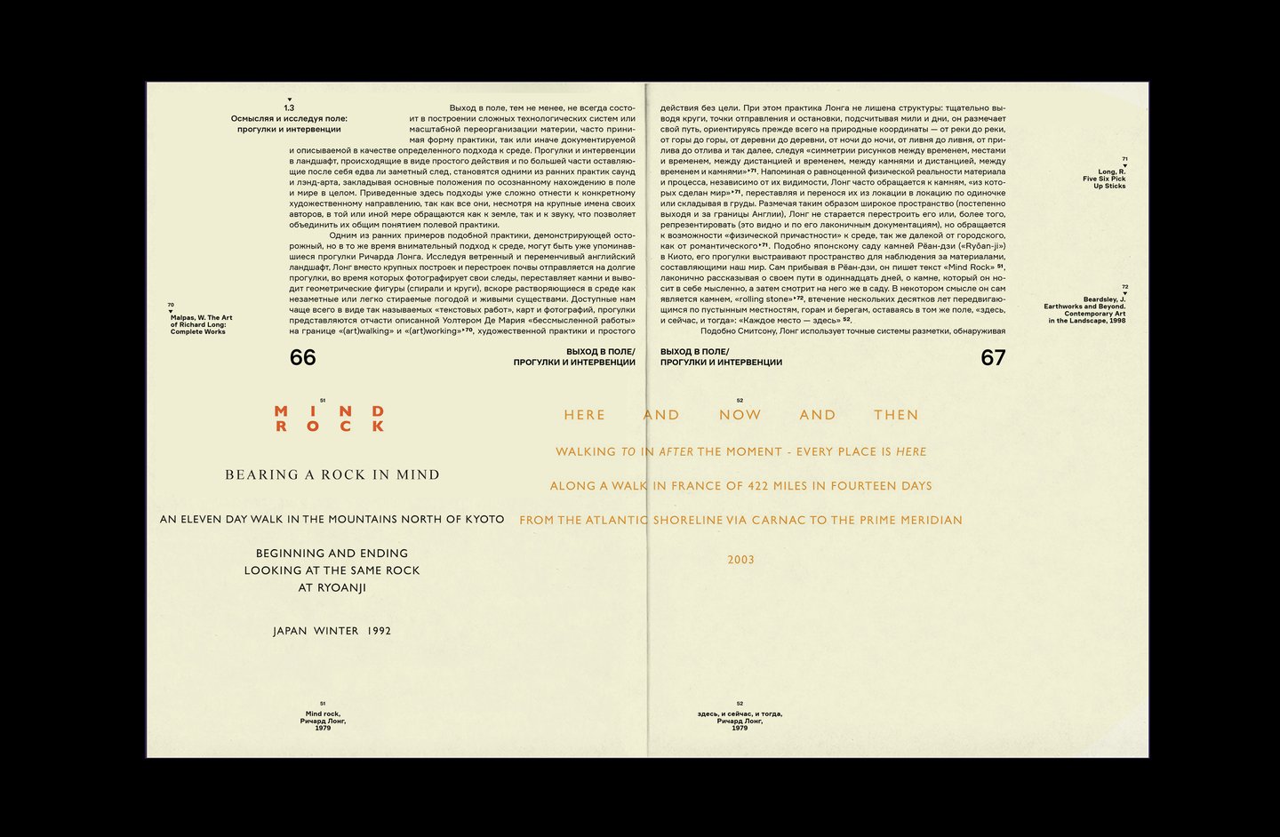 The entry and exit of the book is a direct «field exit» from the gallery (example of Richard Long’s work)