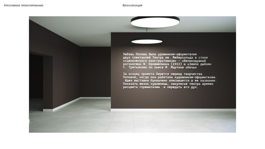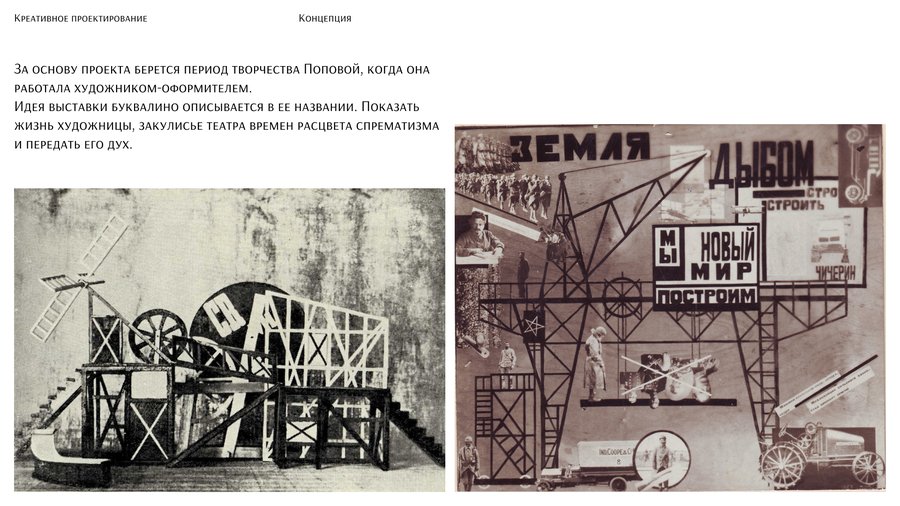 За основу проекта берется период творчества Поповой, когда она работала художником-оформителем.