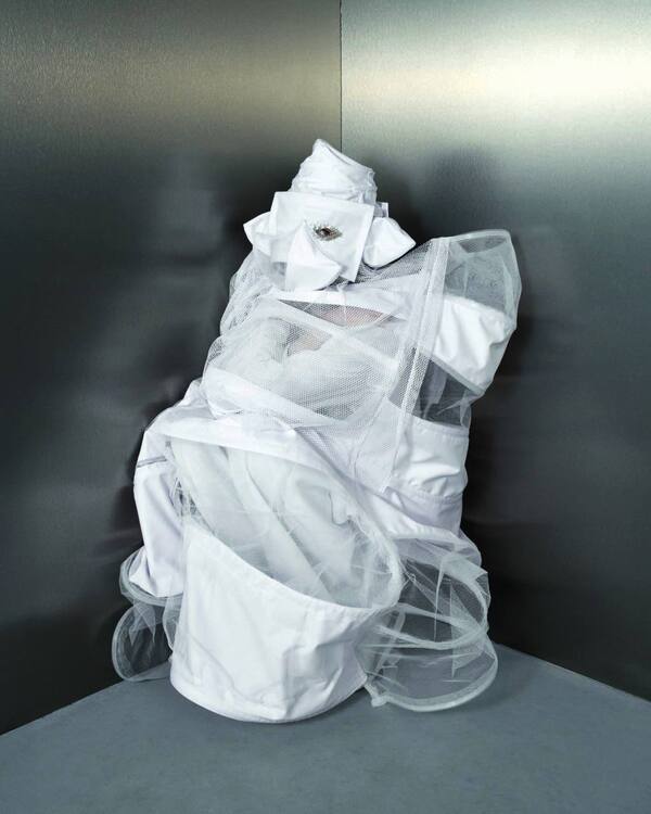 - проводник в камерный экологически-чистый мир, где все в порядке, где не существует войн, эпидемий и катастроф. Человек, надевающий противогаз, закрывается в собственном футляре — оболочке против страшных новостей и того, что происходит в окружающем мире.