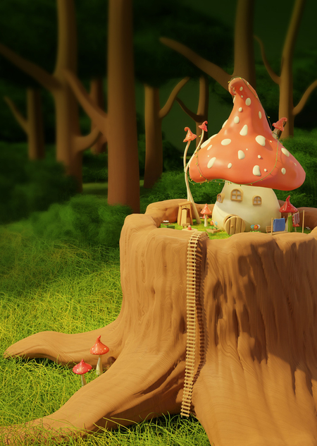 «У Мухоморья» — проект о загадочном и сказочном месте, не доступном человеческому глазу. Поговаривают, что на волшебной опушке в мухоморе живет лесное существо. Ночами среди деревьев можно заметить огоньки: это просыпается житель Мухоморья.