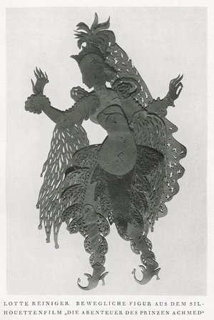 Одной из ключевых фигур в этой области была Лотте Рейнигер (1899–1981) — немецкая художница и аниматор, известная как пионер силуэтной анимации. Одна из её работ «Приключения принца Ахмеда» (1926) считается первым полнометражным анимационным фильмом и важным примером интеграции авангардных идей в анимацию.