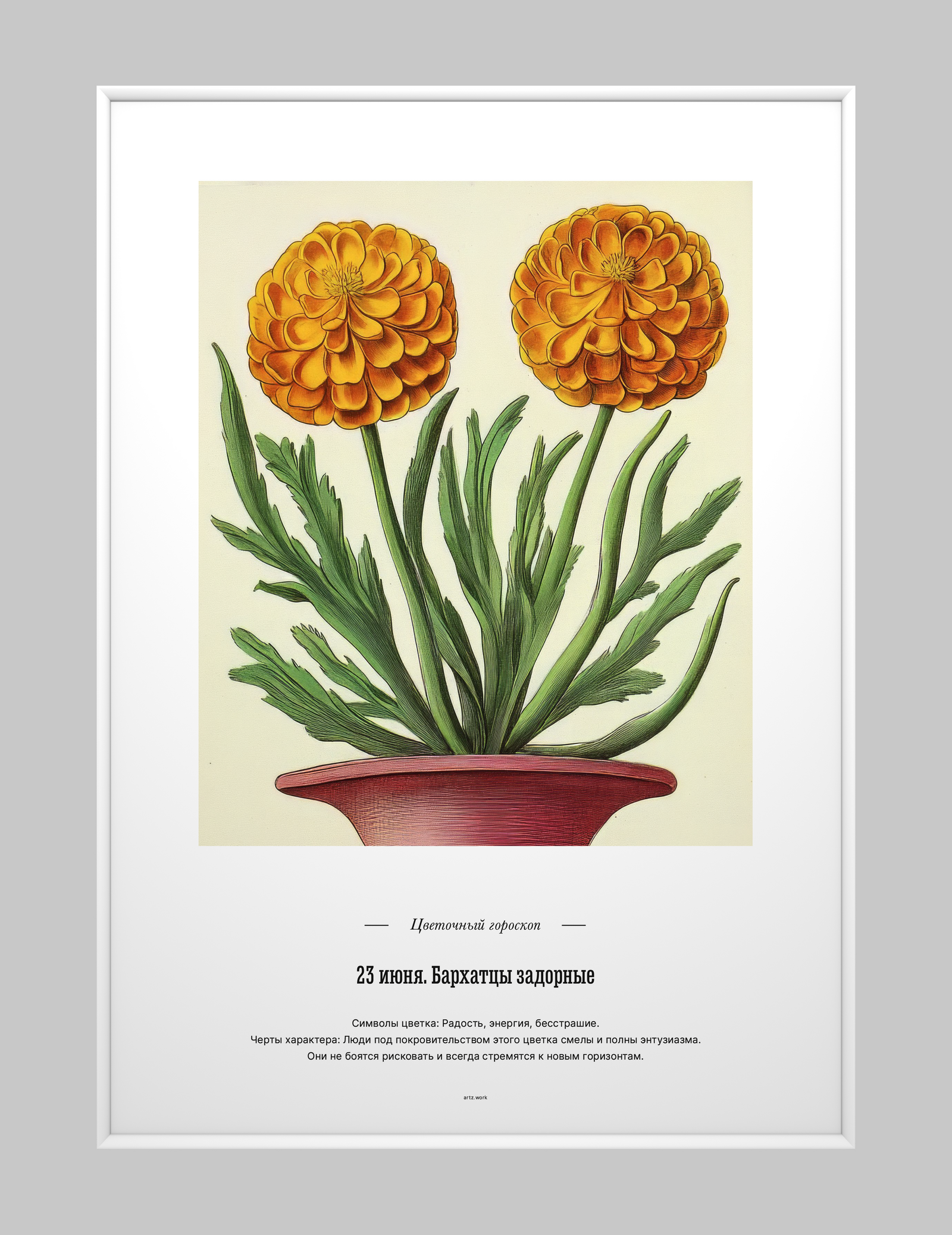 Символы цветка: Радость, энергия, бесстрашие. Черты характера: Люди под покровительством этого цветка смелы и полны энтузиазма. Они не боятся рисковать и всегда стремятся к новым горизонтам.