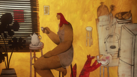 Анна, кот и мышка (реж. Варя Яковлева, 2020). Разворот стола героини в другую плоскость позволяет изучить ее быт.