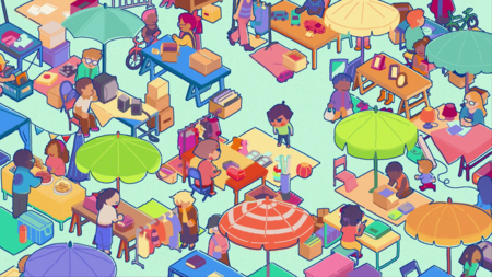 В подобном представлении окружения зритель видит как будто в двух измерениях. На картинке ниже это вид сверху и вид сбоку: персонажи развернуты в профиль, но мебель и предметы раскрыты на зрителя. Благодаря этому приему изображение становится максимально информативным: можно разглядеть все, что не дала бы увидеть реальная перспектива.