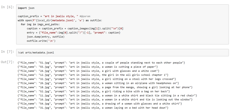 Далее с помощью модели BLIP были созданы описания изображений и префикс «art in jealiu style», которые затем используются для обучения модели.