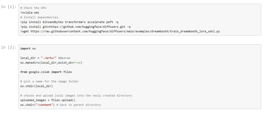 Первым этапом в коде была проверка GPU и установка зависимостей, создание локальной директории для хранения изображений и загрузка изображений на платформу Google Colab.