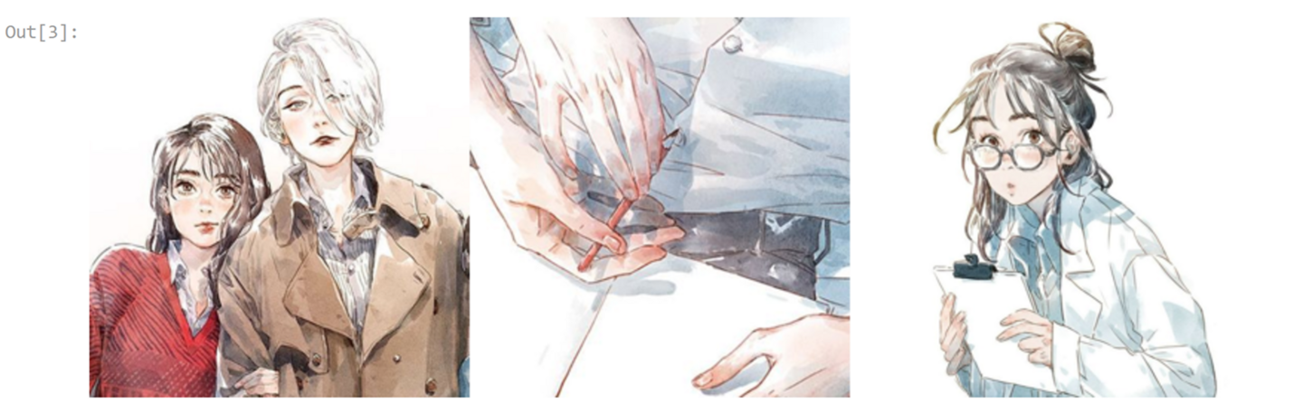 Для обучения нейросети я взяла около 50 работ Jealiu, часть из которых — фрагменты нарисованных ею манг. Предварительно было необходимо привести все изображения к разрешению 1024×1024 и убрать лишние детали, которые могли помешать нейросети (например, текст или рамки).