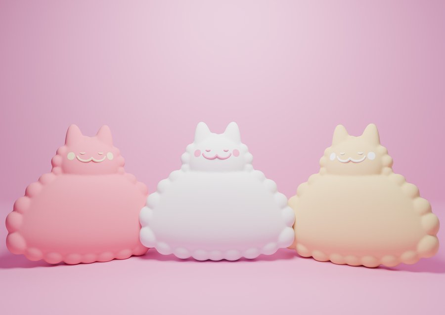 Promt: Design soft ‘Cloud Comfort’ head pillows for the MIO brand. The pillows should be made of soft, pleasant to the touch material (e.g. microfibre or welsoft), have rounded shapes resembling a cloud of whipped cream. The colour palette is pastel tones (white, cream, soft pink). The design should use elements reminiscent of the whipped cream cat (MIO brand mascot), such as embroidery or print. Consider options with different sizes and shapes of pillows (e.g. small neck pillows or large sleep pillows). Make packaging minimalist and elegant, using pastel colours and a discrete MIO logo. Prioritise softness, comfort and airy designs that are in line with the brand’s theme.