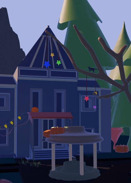«Кошачья площадь» — проект, выполненный в Blender. Главная идеей было создать небольшую площадь, в которой непременно были бы кошки и присутствовала тематика приближающегося праздника — Хэллоуина.