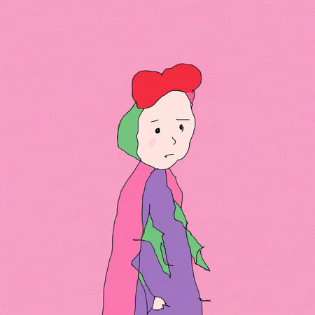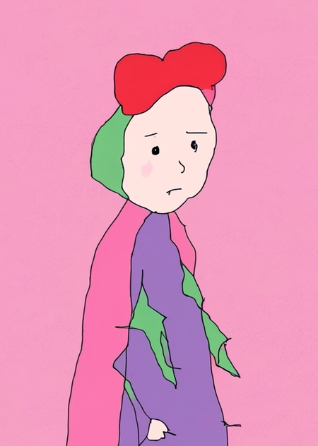 Prompt: animation frame in tu4kina style, character with flower