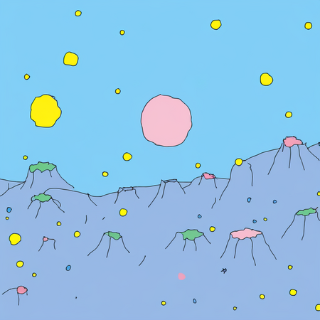 Prompt: animation frame in tu4kina style, blue sky with planet | Prompt: animation frame in tu4kina style, blue sky