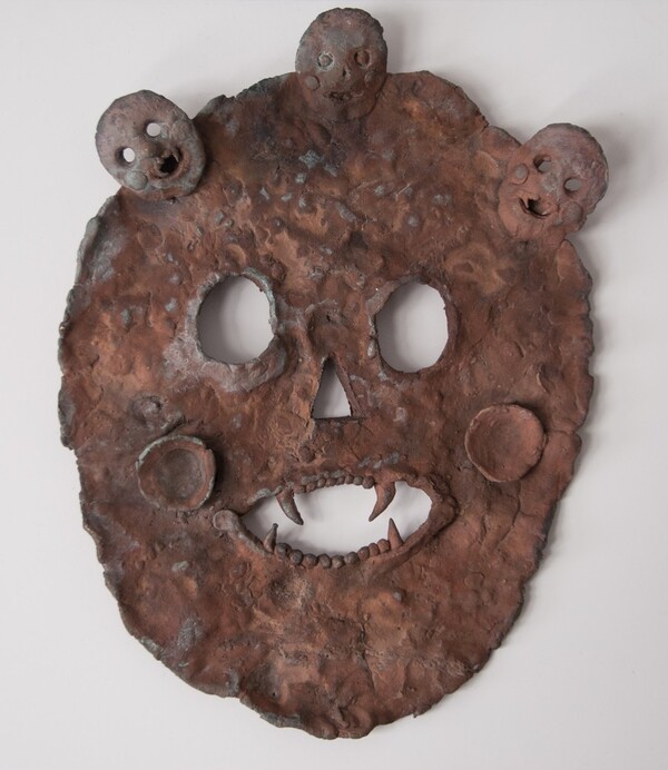 1. Евгений Антуфьев. Без названия. 2018. Бронза. Фото: Artwin Gallery | 2. Евгений Антуфьев. Без названия 2018. Бронза. 42×36 (маска) 10×18×17 (ваза)