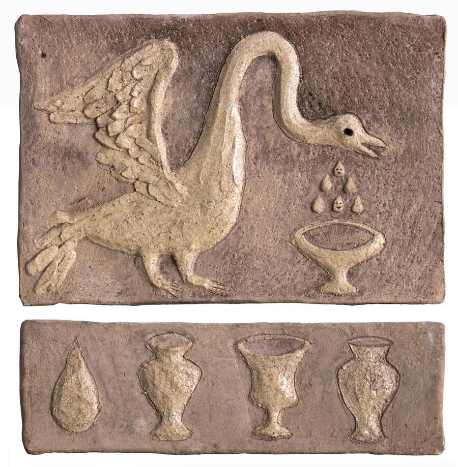 Любовь Налогина, Евгений Антуфьев Без названия (две части), 2018, керамика 28×40×4 см (верхняя часть), 11×40×4 см (нижняя часть)