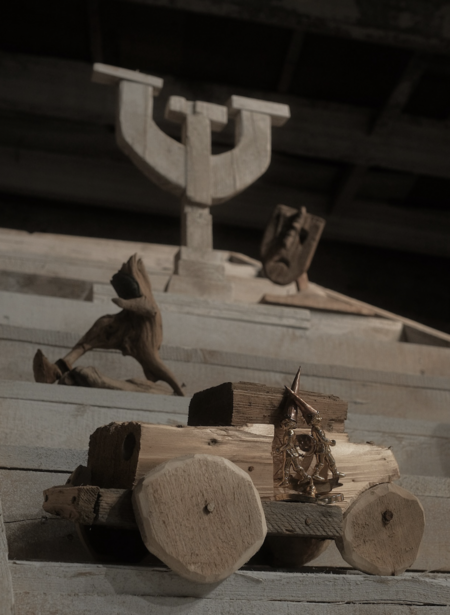 1. Евгений Антуфьев Без названия, 2018 | 2. Евгений Антуфьев. Без названия, 2015, дерево 110×45×35 см