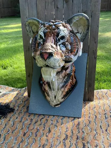 Stephanie Hongo, a Southington-based artist, creates intricate animal sculptures from trash. Her process involves meticulous selection, cleaning, and assembly of discarded materials, followed by painting and finishing. Despite the uniqueness of her work, Hongo faces challenges such as sourcing suitable materials, extensive labor, and fluctuating sales, which impact the sustainability of her art practice.